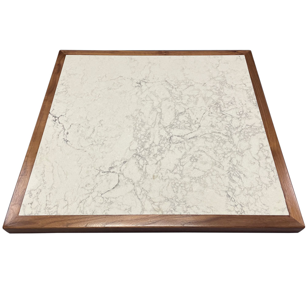 2CM Caesarstone #5043 “Monte Blanc” Quartz Inlay Tabletop with Walnut Wood Edges