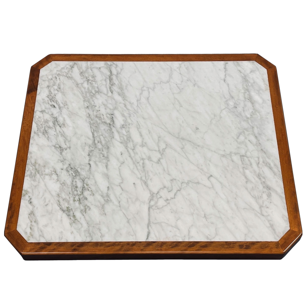 2CM Carrara Marble Inlay Table Top with Custom Stained Cherry Wood Edge