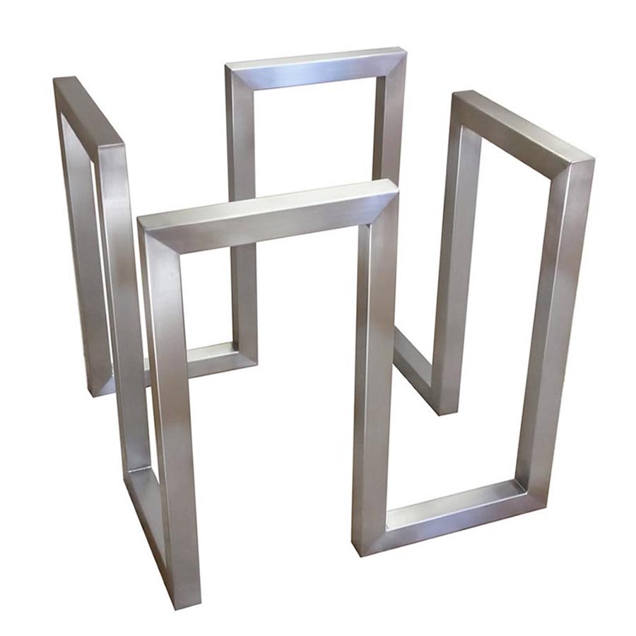 Athena (Square) Table Bases are contemporary pieces fabricated with stainless steel tubing in a brushed finish. The base is fully welded with all welds are polished seamlessly. Custom sizes available.