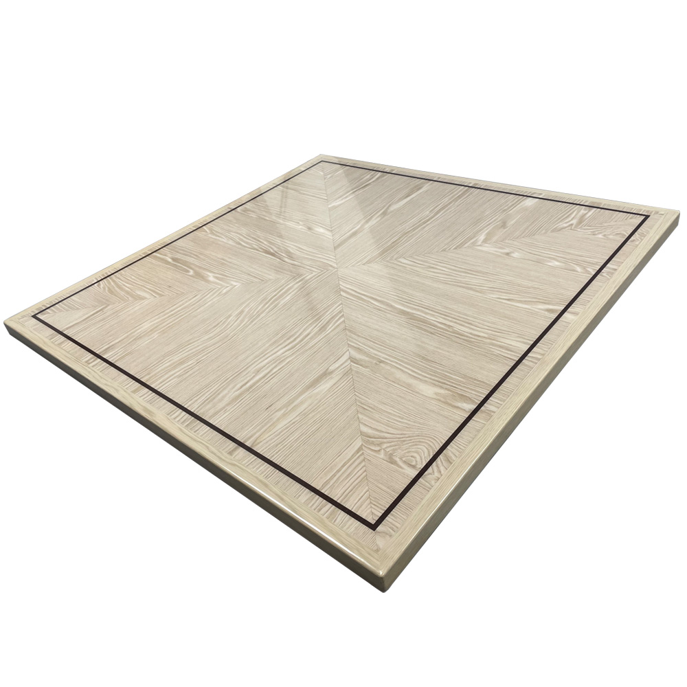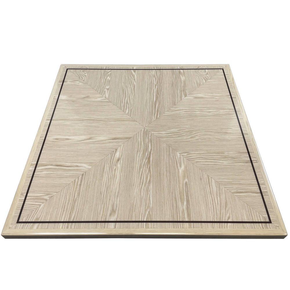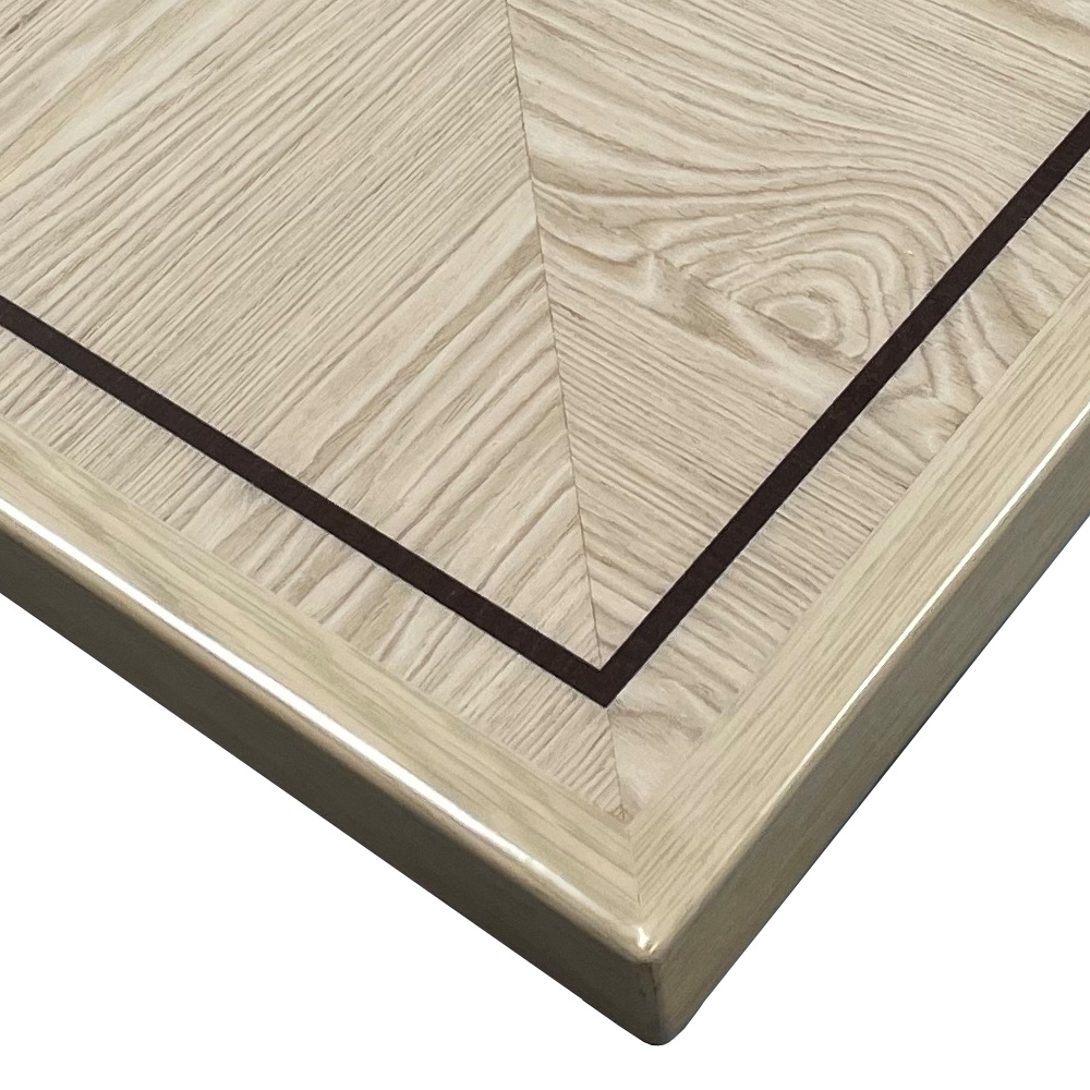 Brookline “Plank Silver Grey Oak” Table Top in a Reverse Box Pattern, with Accent Stripe inset ¾” From Wood Edge, Wood Edge, Custom Stained and Ultra UV Cured Finish –