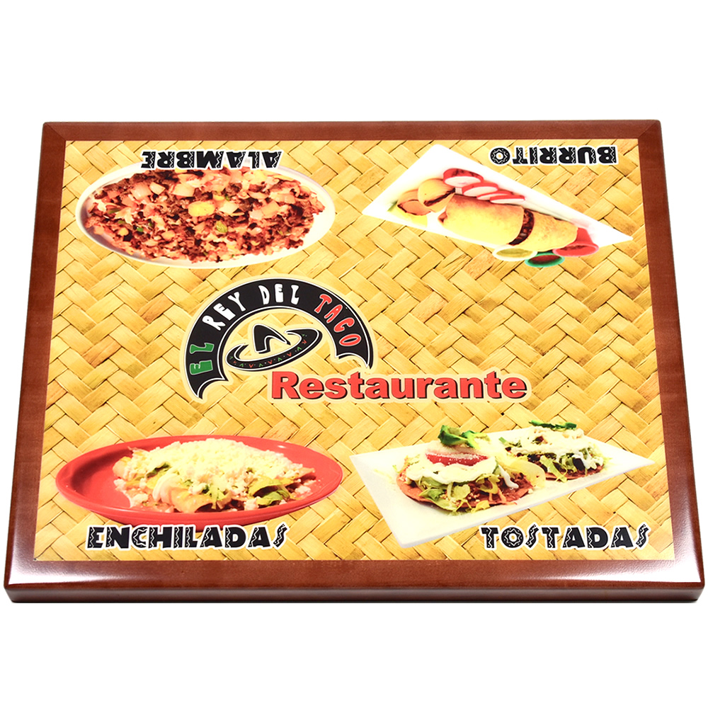 Digital Print from Customer Supplied Artwork with Stained Maple Edge Custom Made Restaurant Table Top