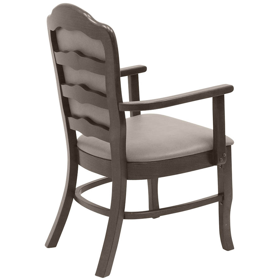 H-DUK Arm Chair​ is a graceful dining chair with a regal look that features detailed wood over an upholstered back. This chair is sure to bring style and class to any dining and conference setting. Casters are available which allows the H-DUK to be easily mobile. Custom stains as well as fabric and vinyl will help you to create a unique dining area for your project.