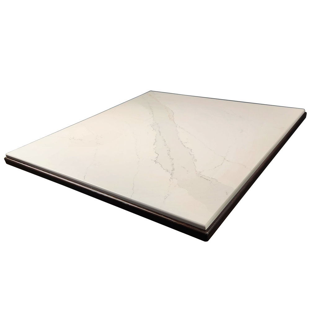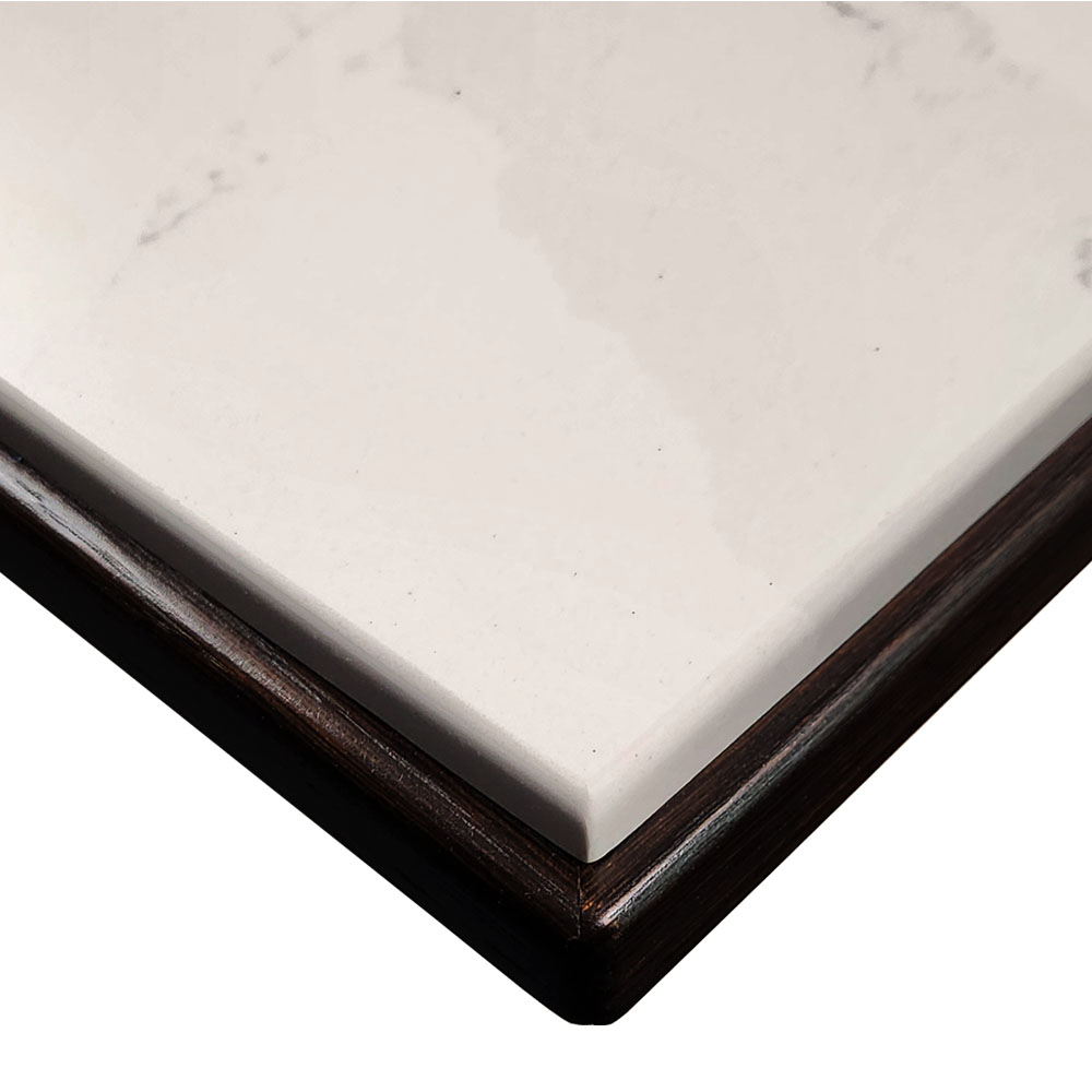 Silestone Calacatta Gold Overlay Tabletop with Custom Stained White Oak Wood Edge